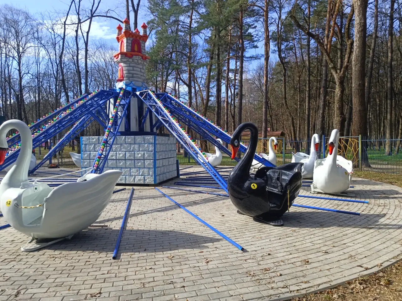 Интерактивный полет над парком. Ты сам управляешь высотой своего лебедя с помощью кнопок в кабине. Взлетай выше всех — штурвал в твоих руках!